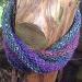 The scarves are knitted in one piece, with no seams, demonstrating a true Moebeus strip design. Designed to be loose around the neck these mufflers trap a cushion of air and are comfortable, soft and warm.